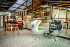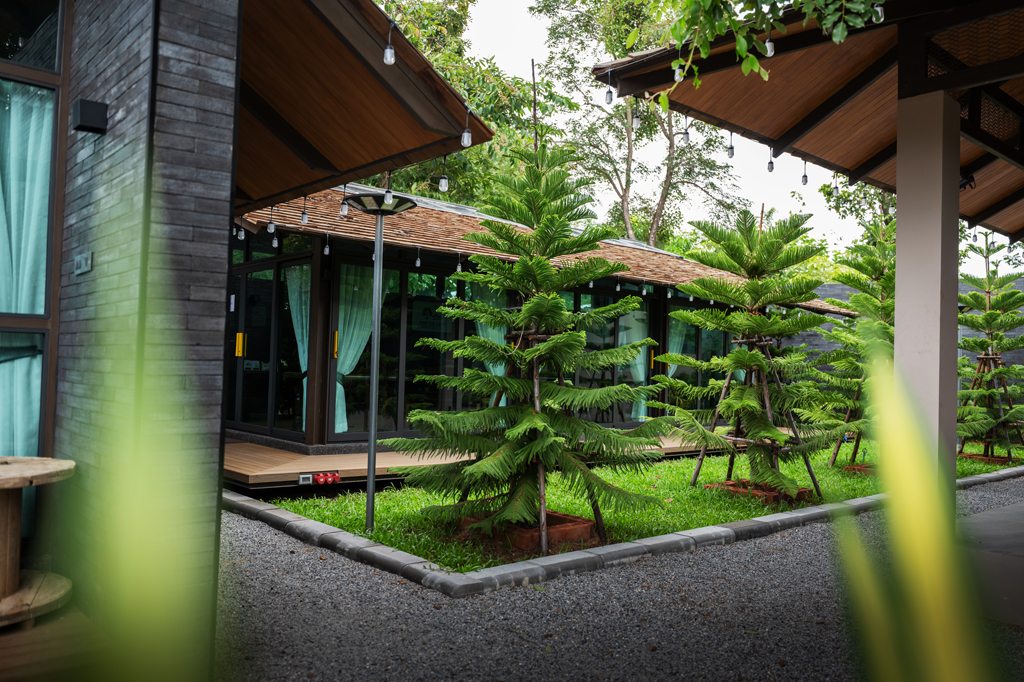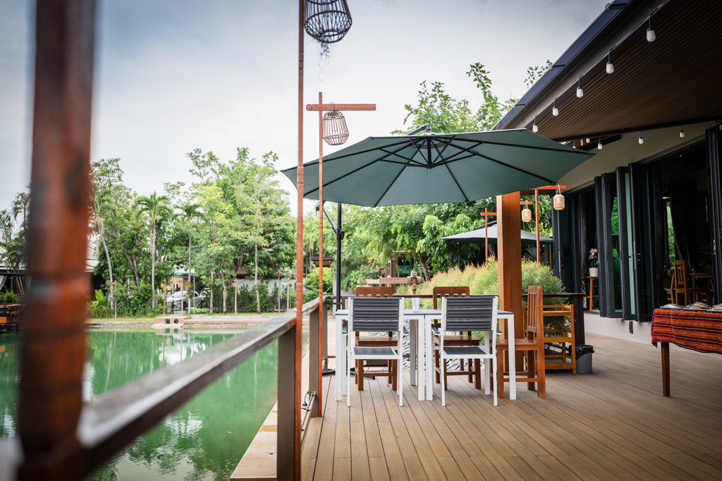 จองห้องพัก ห้องพักที่มาพร้อมกับเฉลี่ยงหน้าห้อง สำหรับรับประทานอาหารหรือสังสรรค์แบบครอบครัว อาคารห้องพักออกแบบให้เข้ากับบรรยากาศพื้นบ้านประยุกต์ ที่ยังคงความทันสมัย พร้อมสิ่งอำนวยความสะดวกแบบครบครัน รายละเอียดห้อง ขนาดห้อง: 48 ตารางเมตร ห้องปลอดบุหรี่ ฝักบัวอาบน้ำ ฟรี WIFI เครื่องปรับอากาศ